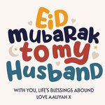 "Eid Mubarak to my husband with you, life's blessings abound love Aaliyah x". 'With you, life's blessings abound love Aaliyah x' can be personalised!