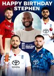 This greeting card features a group of England men’s cricket players in red, blue, and white shirts surrounding a circular photo upload area, with the England Cricket logo on a gradient background.
