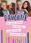 Text reads: “Daughter, an extra candle on the cake.....a year of fun for you to take!"