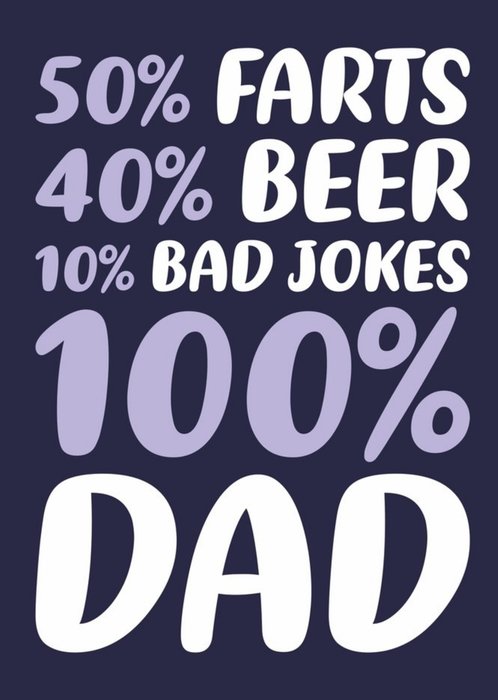 "50% farts. 40% beer. 10% bad jokes. 100% Dad."