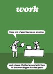 “Work. 'These end of year figures are amazing.' 'Yeah cheers, I fiddled around with them until they were bigger than last years.'”
