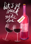 Fishuals Let's Get Drunk And Make Love Illustrated Bottle Of Vino And Wine Glasses Typography Valentine's Day Card