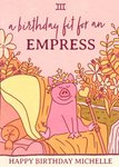Features an illustration of a pig with a crown. Text reads "a birthday fit for an empress Happy Birthday Michelle".