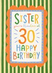 A bright and bold colourful design featuring different layers, one with green & yellow stripes, one with an orange scalloped border and one with playful typography with a blue & yellow spotty edge.