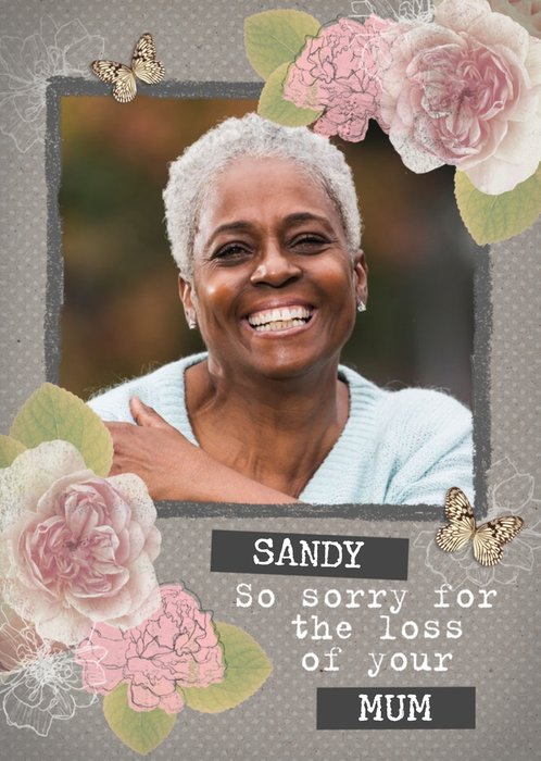 Floral So Sorry For Your Loss Photo Upload Sympathy Card