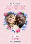 Floral Heart Daughter And Son-In Law Photo Upload Anniversary Card