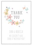 Front of card: Wedding Thank You Card Floral illustration on a white background. Text reads: "Thank you" and "Dan & Rebecca we couldn't have done it without you". 'Dan & Rebecca we couldn't have done it without you' can be personalised!