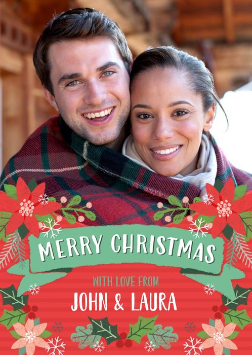 Floral Illustration Poinsettia Photo Upload Christmas Card