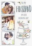 To My Husband On Our Wedding Day - Floral Photo Upload Wedding card