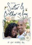 Floral Photo Upload Wedding Card - Sister and Brother-In-Law - Traditional Flowers And Bumblebee