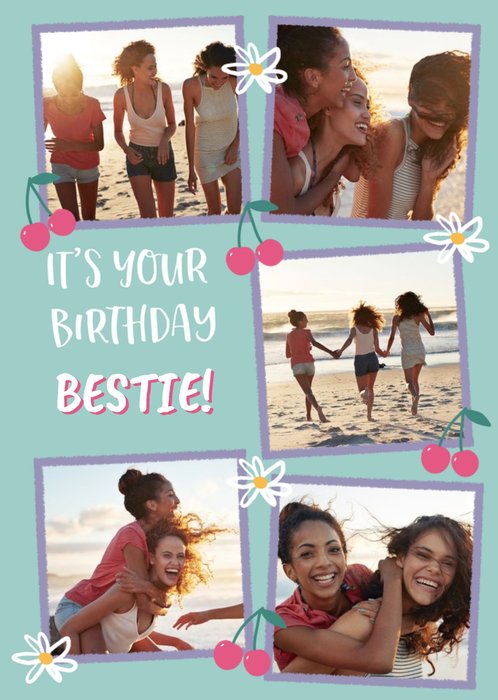 Folk Flowers Photo Upload It's Your Birthday Bestie! Card