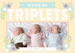 Folk Flowers Triplets Photo Upload New Baby Card