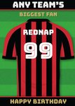 "Any team's biggest fan Rednap 99 Happy Birthday". 'Any team's' must be personalised, 'Rednap 99' can be personalised!
