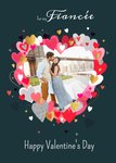 Front of card: Modern Valentine's Day card featuring Collage of Hearts creating a heart shaped photo upload. The editable text reads: "For My Fiancée Happy Valentine's Day"