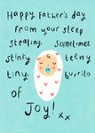 "Happy Father’s Day from your sleep-stealing, sometimes stinky, teeny tiny burrito of joy! xx."