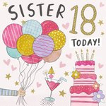 Fun Cute Illustration Sister 18 Today Birthday Card