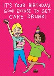 Fun Illustration Of People Getting Cake Drunk Birthday Card