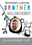 The card reads:"happy birthday to my brilliant brother william henry, the most talented monkey in the zoo". "william henry" text is editable.