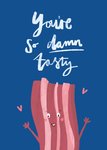 Funny Bacon Cartoon You're So Damn Tasty Valentines Card