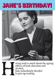 Send Funny Birthday Cards. Personalise your birthday cards with your own photos and message. - JANE'S BIRTHTDAY - Having read so much about the ageing effect of both chocolate and alcohol, Jane immediately decided to give up reading.