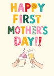 Funny Bottle And Champagne Glass First Mother's Day Card