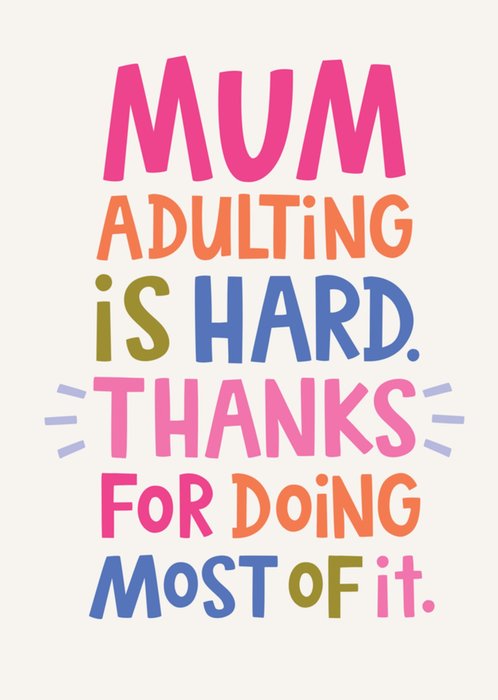 Funny Colourful Typography Adulting Is Hard Mother's Day Card