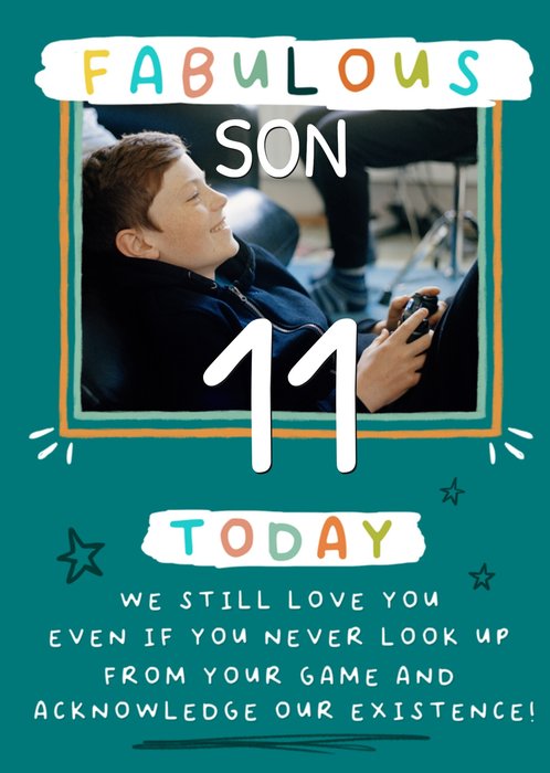 "Fabulous Son. 11 Today. We still love you, even if you never look up from your game and acknowledge our existence!"