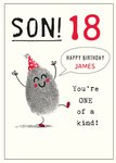"SON! 18 HAPPY BIRTHDAY JAMES You're one of a kind!" With editable name and age text.