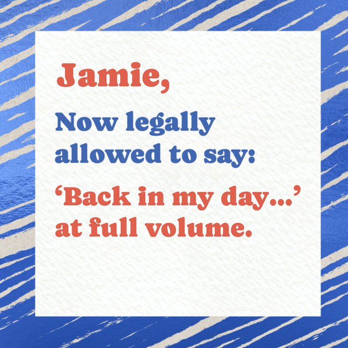 "Now legally allowed to say: ‘Back in my day…’ at full volume."