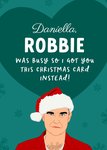 Text reads: "Daniella, Robbie was busy so I got you this Christmas card instead!"