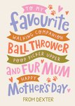 This playful Mother’s Day card for a pet mum features vibrant and whimsical typography with paw print accents, celebrating the fun and love between pets and their favourite human.