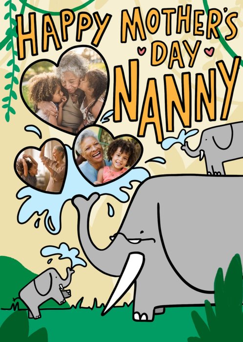 Illustrated Jungle Theme with a Mother Elephant and her Kids with 3 heart shaped Photo uploads.