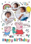 Front of card: George and Mummy Pig Photo Upload Birthday Card Illustration of George and Mummy Pig with three circular photo frames. Text reads: "Grr!!", "roar" and "Happy birthday".