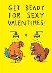 Featuring a cartoon chicken and beaver taking a shower together with a small red heart between them, on a bright yellow coloured background.