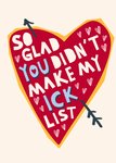 "So glad you didn't make my ick list."