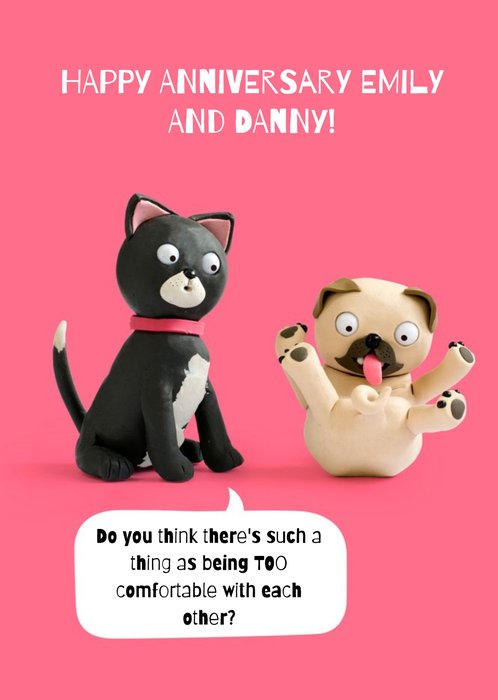 The text reads: "On your anniversary try to enjoy some romantic couple time without any distractions." "let us in" "can you hear something darling" "no, not a thing"