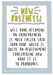 Go La La Simple typographic New Business Card. The non editable caption reads Well Done, Becoming An Entrepreneur Is Much Easier Said Than Done Which Is Quite An Achievement Considering How Hard It Is To Pronounce. The card has a blue border and a white background.