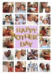 Featuring a collage layout of 20 photo upload areas surrounding a central lilac scalloped panel with gold balloon-style lettering, all on a white background.