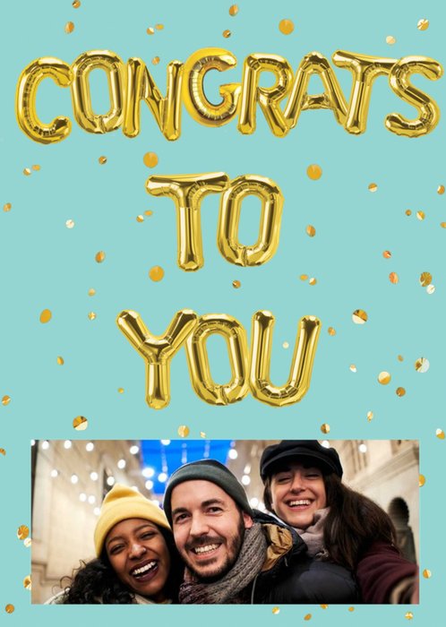 Gold Balloon Typography On A Teal Background Congratulations Photo Upload Card