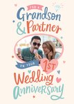 Grandson & Partner Photo Upload 1st Anniversary Card