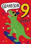 Grandson 9 Today Bright Skateboarding Dinosaur Birthday Card