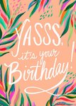 Handwritten Typography With Colourful Foliage Yasss It's Your Birthday Card