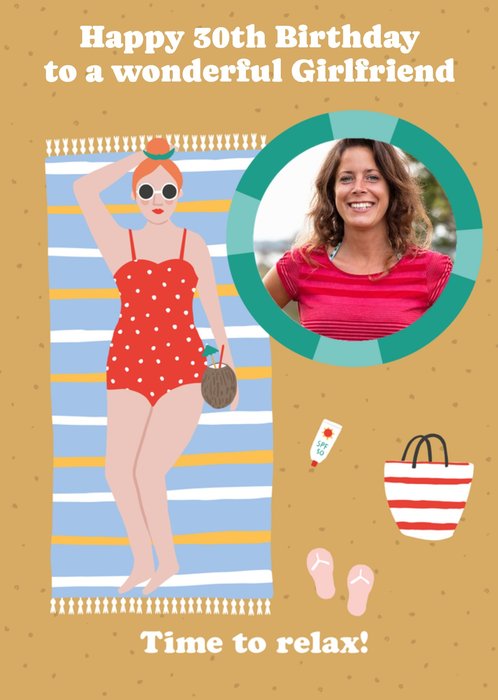 Happy 30th Birthday To A Wonderful Girlfriend Time To Relax Personalised Photo Upload Card