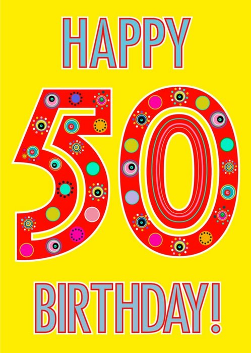 Features bold text that reads "Happy 50th birthday".