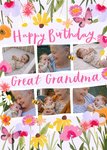 Happy Birthday Great Grandma Watercolour Flowers Photo Upload Card