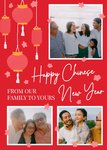 "Happy Chinese new year from our family to yours". 'From our family to yours' can be personalised!
