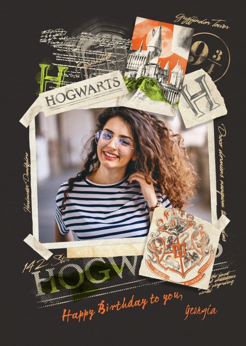 Harry Potter Photo upload birthday card - Hogwarts