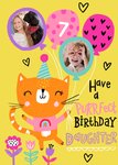 Have A Purrfect Birthday Daughter Cat and Balloons Photo Upload Card