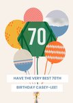 "70 have the very best 70th birthday Casey-Lee!". All text can be personalised!