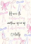 "Here's to celebrate another year of fabulousness Molly". 'Molly' can be personalised!